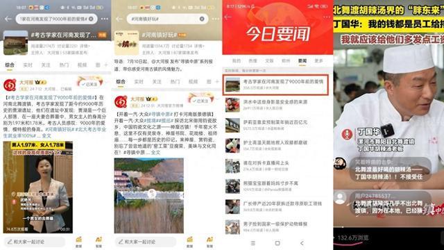 河南,自古便是文化、历史大省,古镇星罗棋布。目前被认证的千年古镇已有55座,更多小镇则各有风采,数不胜数。“寻镇中原”系列报道上线后,很快就在微博、头条、抖音等平台引多方关注,全网传播量超1亿次。“河南镇好玩”微博阅读量突破1300万;#考古学家在河南发现9000年前的爱情#阅读量2170万;北舞渡胡辣汤的探访视频播放量超百万……多次登上全国热搜,成为现象级话题。